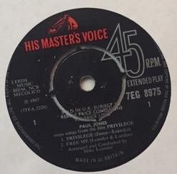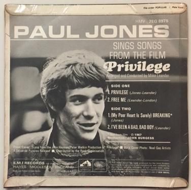 "マンフレッド・マン"脱退後のソロ作。映画「プリヴィレッジ」からのEPカット。'67年作。ジャケ・フィルム浮きあり。