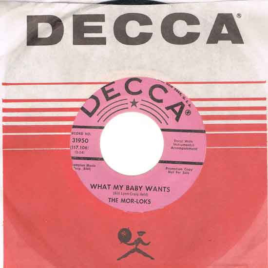 Rockin'なガレージナンバー"Elaine"でも知られる"フロリダ"の5人組みガレージグループ"Mor-loks"の66年リリースのセカンドシングル!!Fuzz / オルガンの効かせつつBeat感のあるGarage Punkナンバー!!!"Decca"スリーブ付き!!