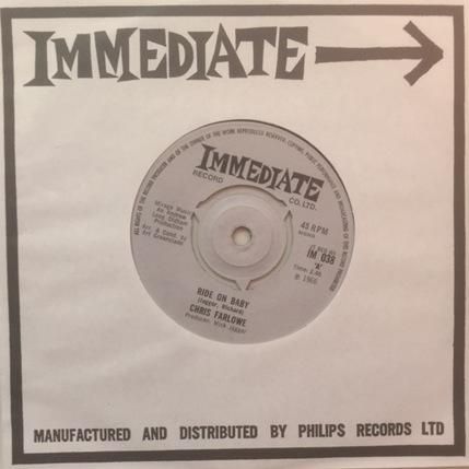 野太い声が印象的なクリス・ファーロウ。ミック・ジャガーがプロデュースした"IMMEDIATE"時代のミック/キースのペンによるナンバー。B面もブルーアイドソウルなナイスチューン。66年作品。盤面ミントなレアシングル!リイシュースリーブ付き。