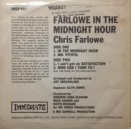 ミック・ジャガーがプロデュースしたことで知られる野太い声が印象的なR&B/BEATボーカル、クリス・ファーロウ。黒人顔負けのソウルフルなボーカルとビートが詰まったIMMEDIATEリリースの'65年作4 TRACKS EP!盤質も美品な激レアEPです!