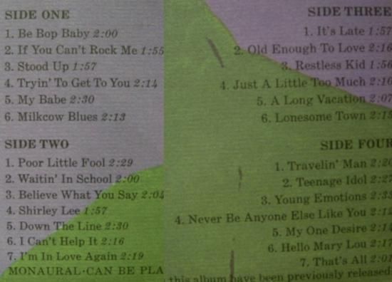 Fools Rush In"や"Poor Little Fool "などPops路線のナンバーでよく知られるニュージャージ"出身で様々なヒットを放った俳優でシンガーの"リッキーネルソン"!!!ロカビリーよりな作品も収録したベスト盤!!
