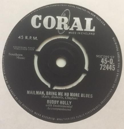 若くして亡くなった永遠の50's R&Rスター"バディー・ホリー"のポップ・ヒット・ソング。レア UK CORAL オリジナル盤。'58年リリース。