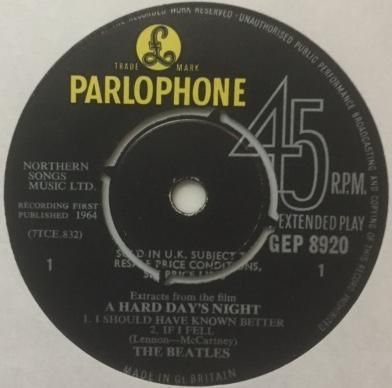 ’64年リリース4曲入りEP。レア初回UKモノラル・オリジナル盤。